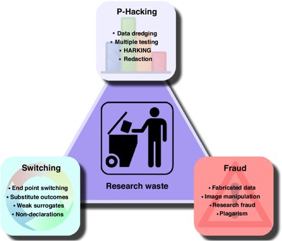 Encontrar maneras de que los datos alcancen el test de significación, el límite del 95% inventado por Ronald Fisher, (valor de “p”, menor de 0.05). Dice Ioannidis “...los científicos están tan ansiosos de alcanzar ese valor que juegan con los números, tratando de hallar algo que sea válido”