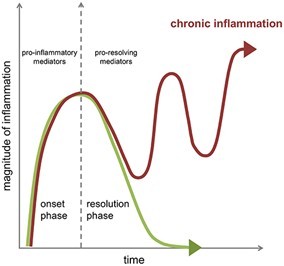 Una respuesta inflamatoria normal, se caracteriza por la activación temporal y controlada de la misma, en respuesta a una amenaza a la integridad del organismo, (una infección, una herida). Recuperado el organismo la inflamación se apaga.