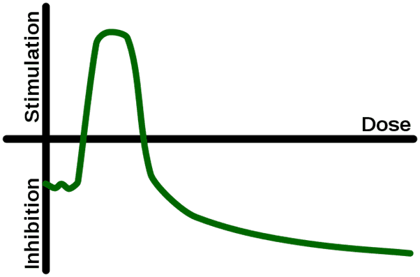 La hormesis es un fenómeno de dosis-respuesta bifásica, caracterizada por una estimulación y efecto beneficioso a baja dosis, y una inhibición y daño a dosis elevadas.
