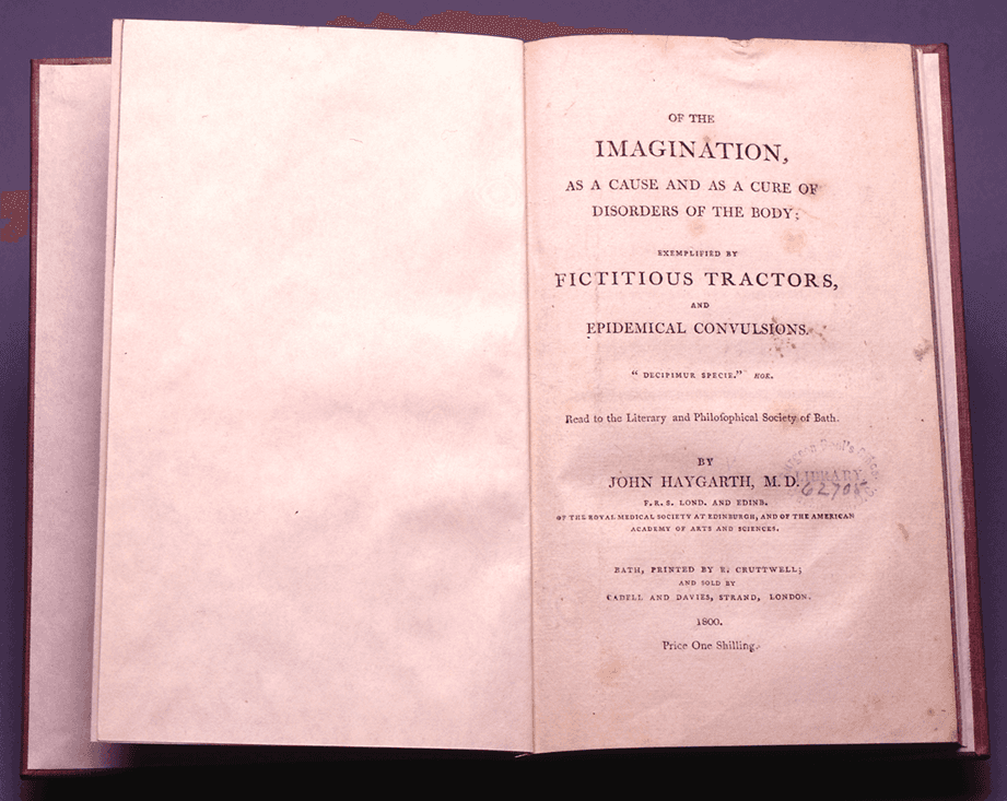 En 1799, Haygarth preparó varillas de madera pintadas para parecer metálicas. Las aplicó para tratar pacientes reumáticos y con otros padecimientos. Para su sorpresa, producían alivio de los dolores, en casi todos los pacientes. Sin ser "verdaderas", mejoraban a las personas.