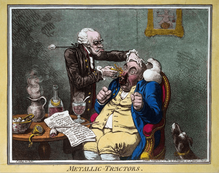 Constituye una de las primeras demostraciones de la existencia del efecto placebo. El médico británico John Haygarth, (1740-1823), entre otros, se interesó en unos dispositivos metálicos creados por un médico estadounidense llamado Elisha Perkins.