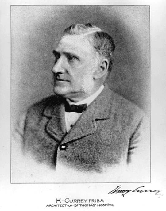 Henry Currey. Arquitecto que diseñó y construyó, con el modelo pabellonal, el Hospital Saint Thomas, en Londres. Wikipedia.