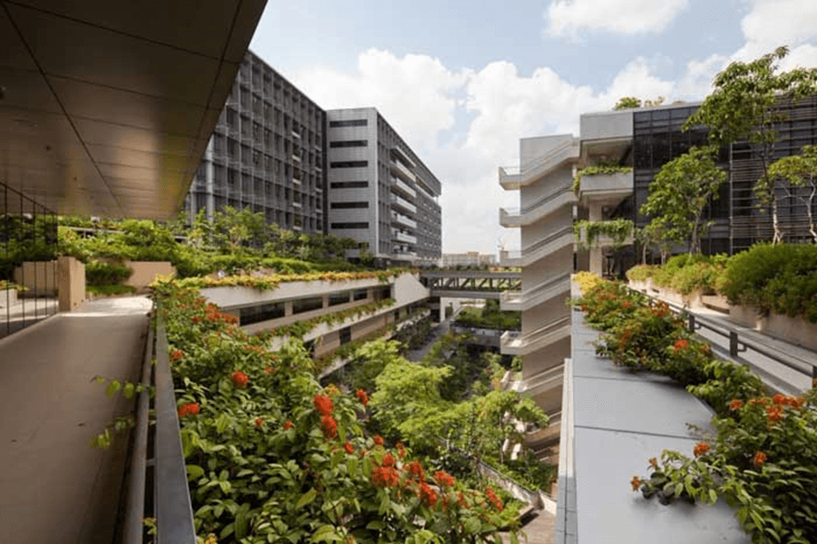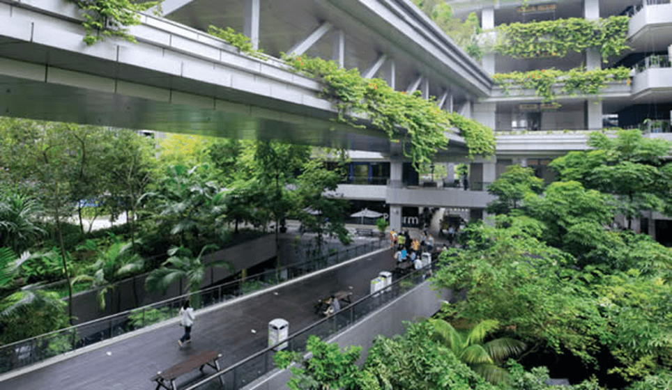 Khoo Teck Puat. Es un “hospital en un jardín y un jardín en un hospital”, Singapur. Ejemplo de diseño biofílico.